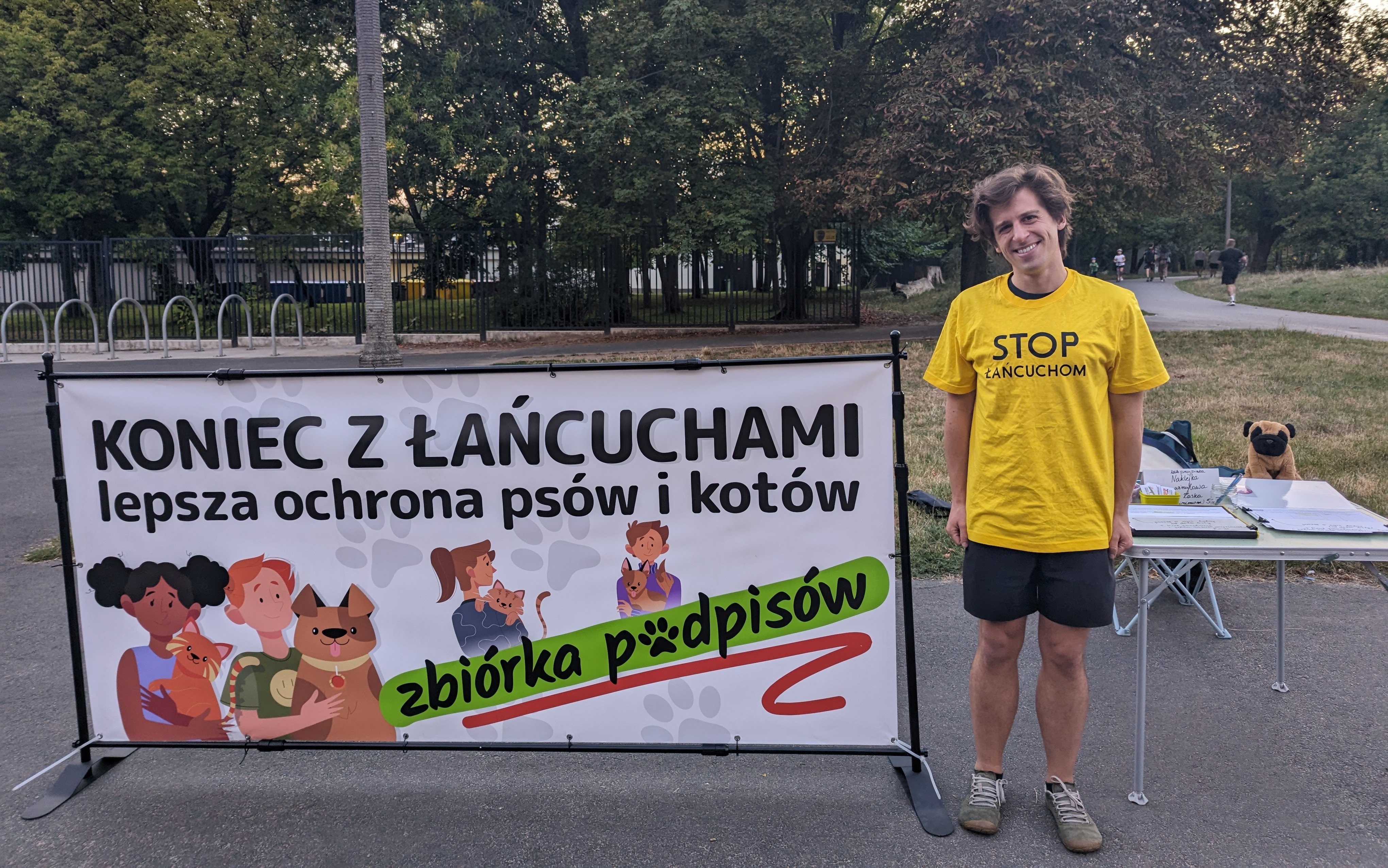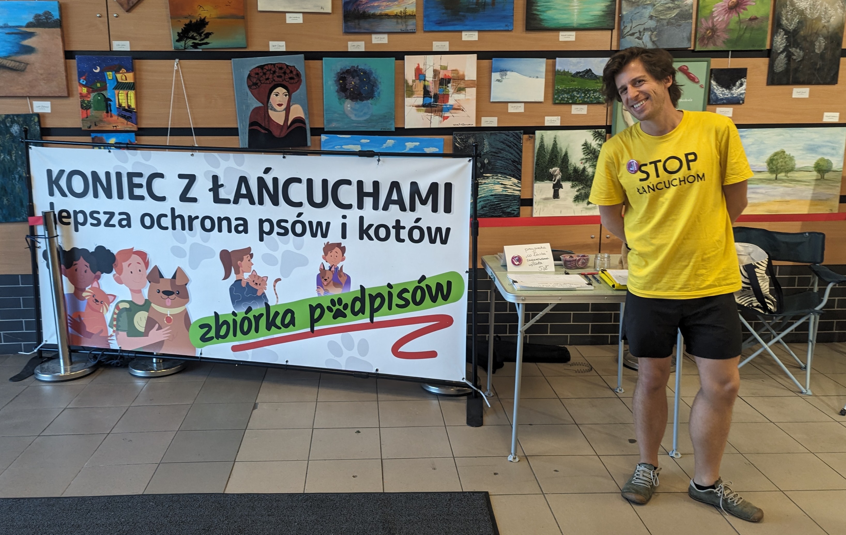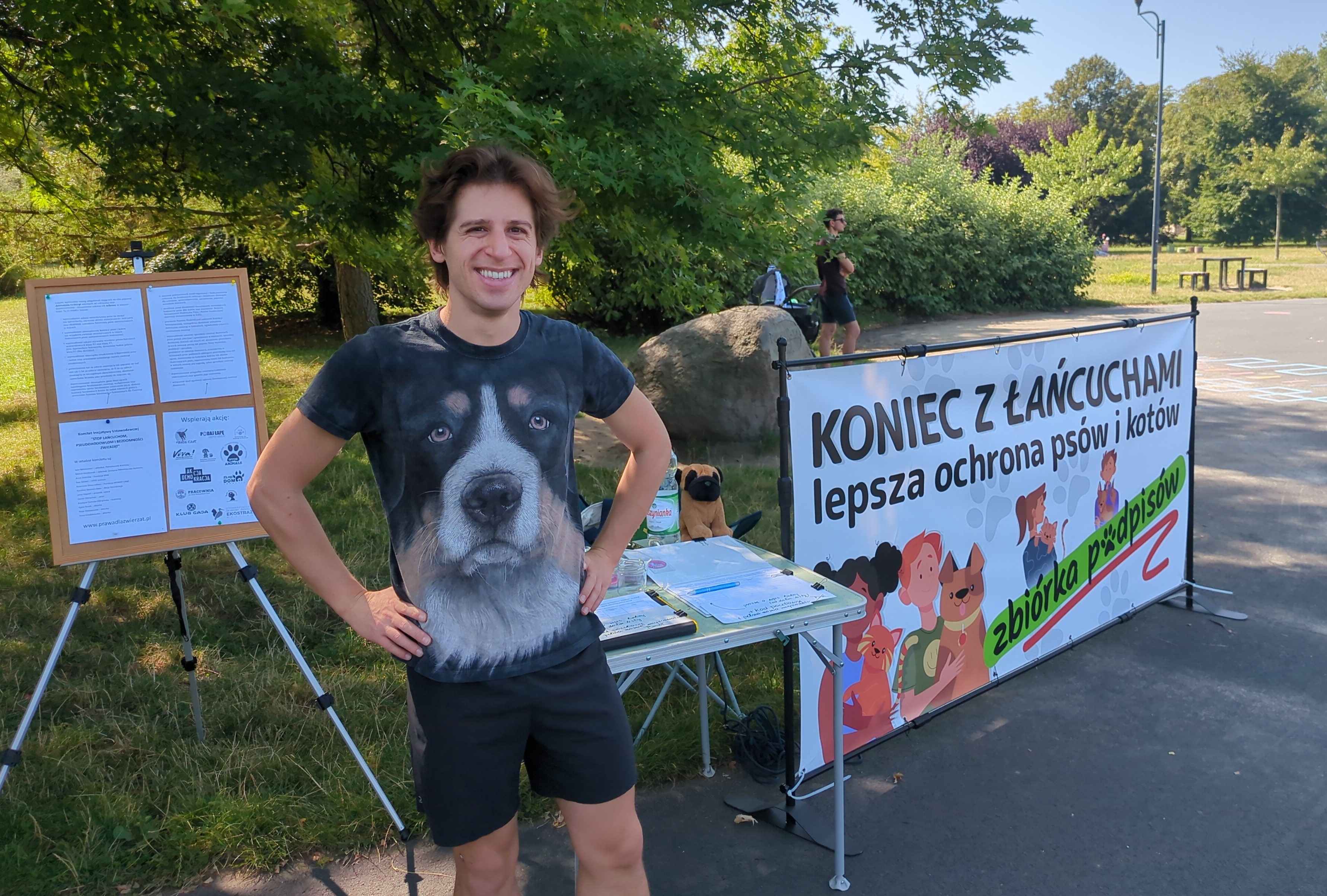 Razem z innymi osobami wolontariackimi stworzyliśmy grupę "Poznań mówi: Stop łańcuchom" z ambitnym celem zebrania 20 tysięcy podpisów. Starałem się być obecny ze zbiórką w różnych miejscach w Poznaniu, a także podczas krótkiej wizyty w Warszawie.