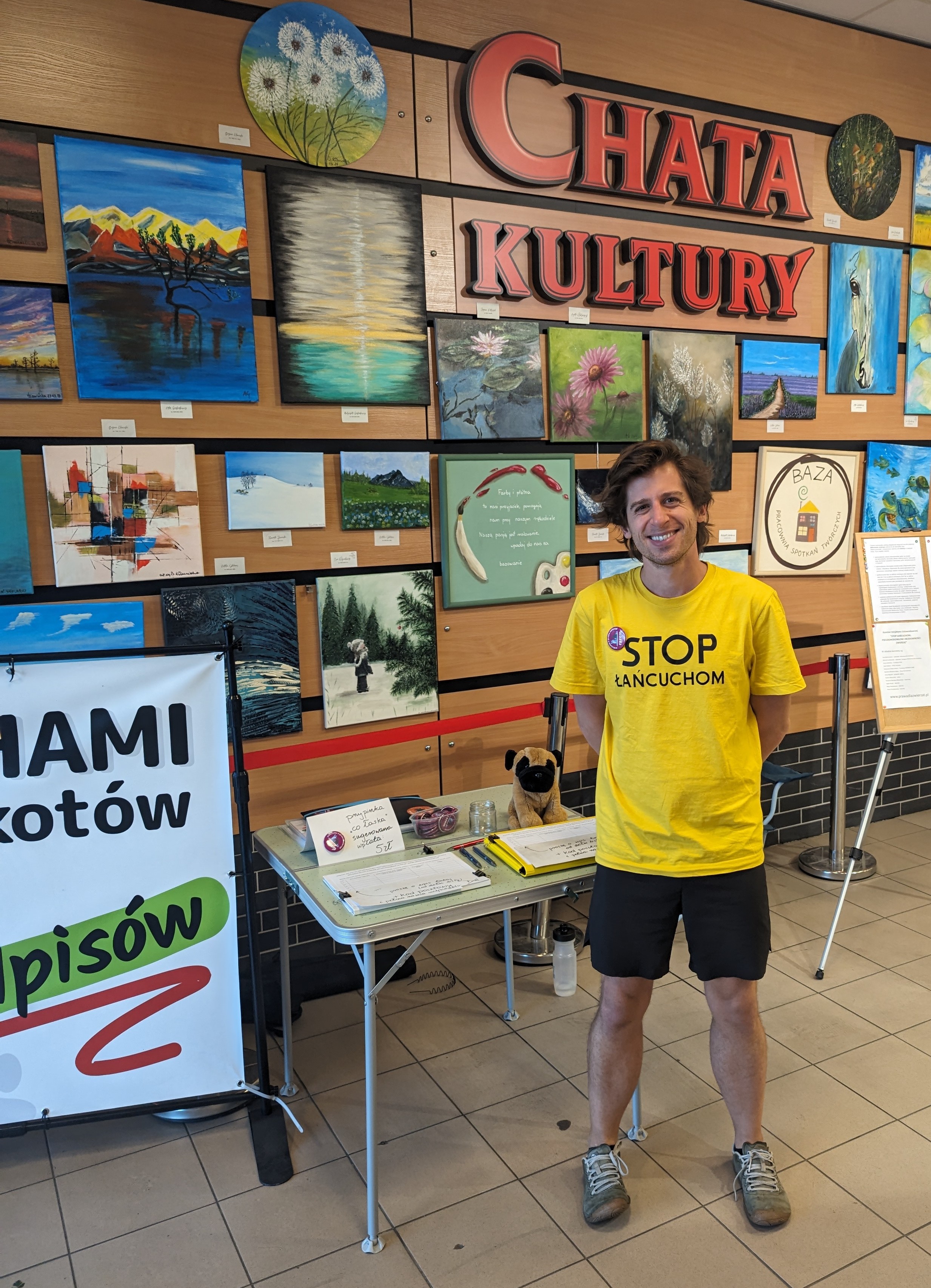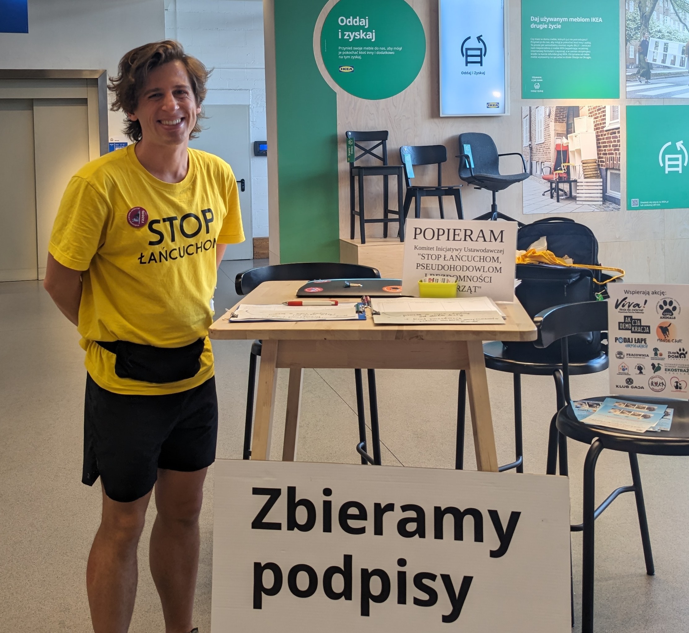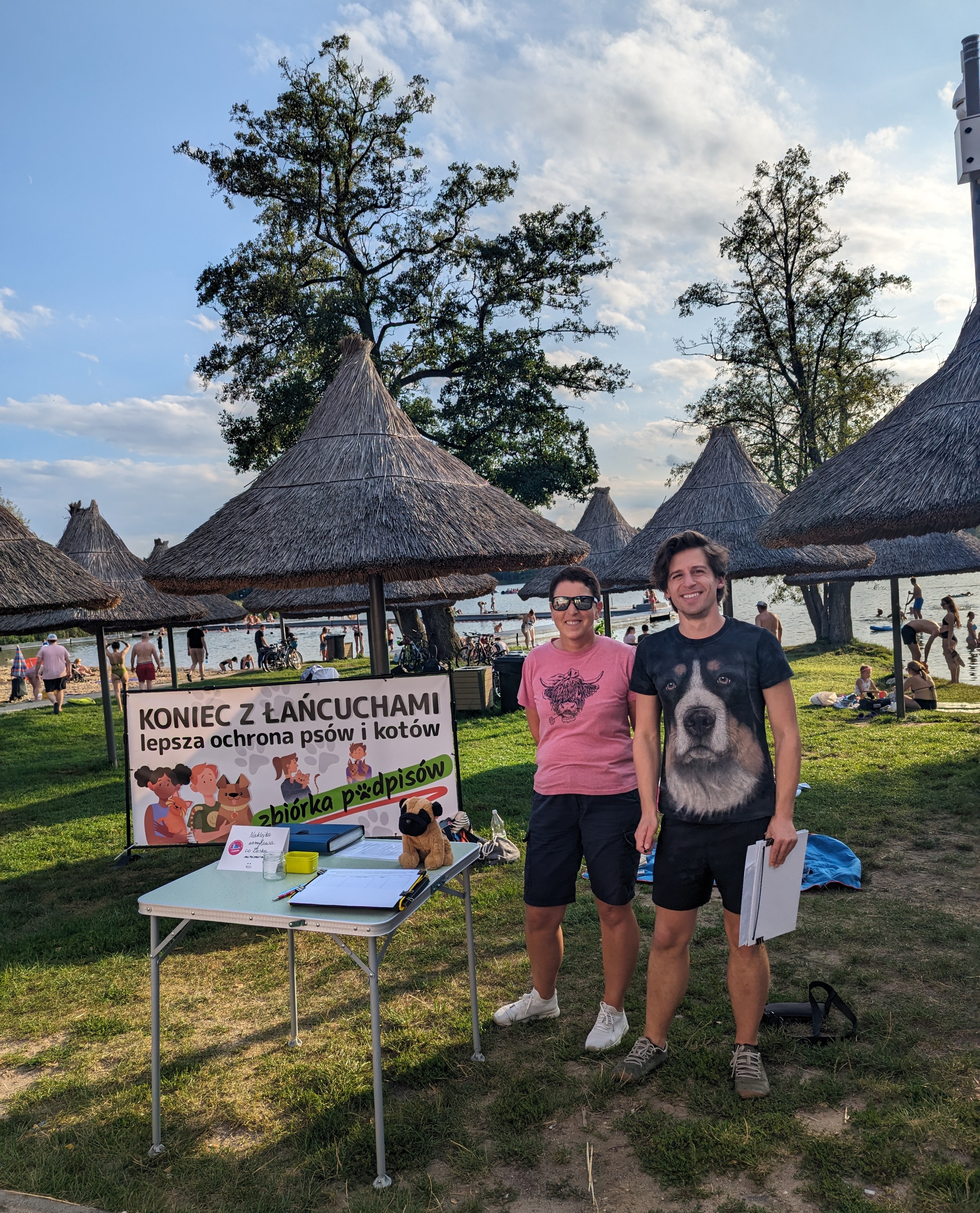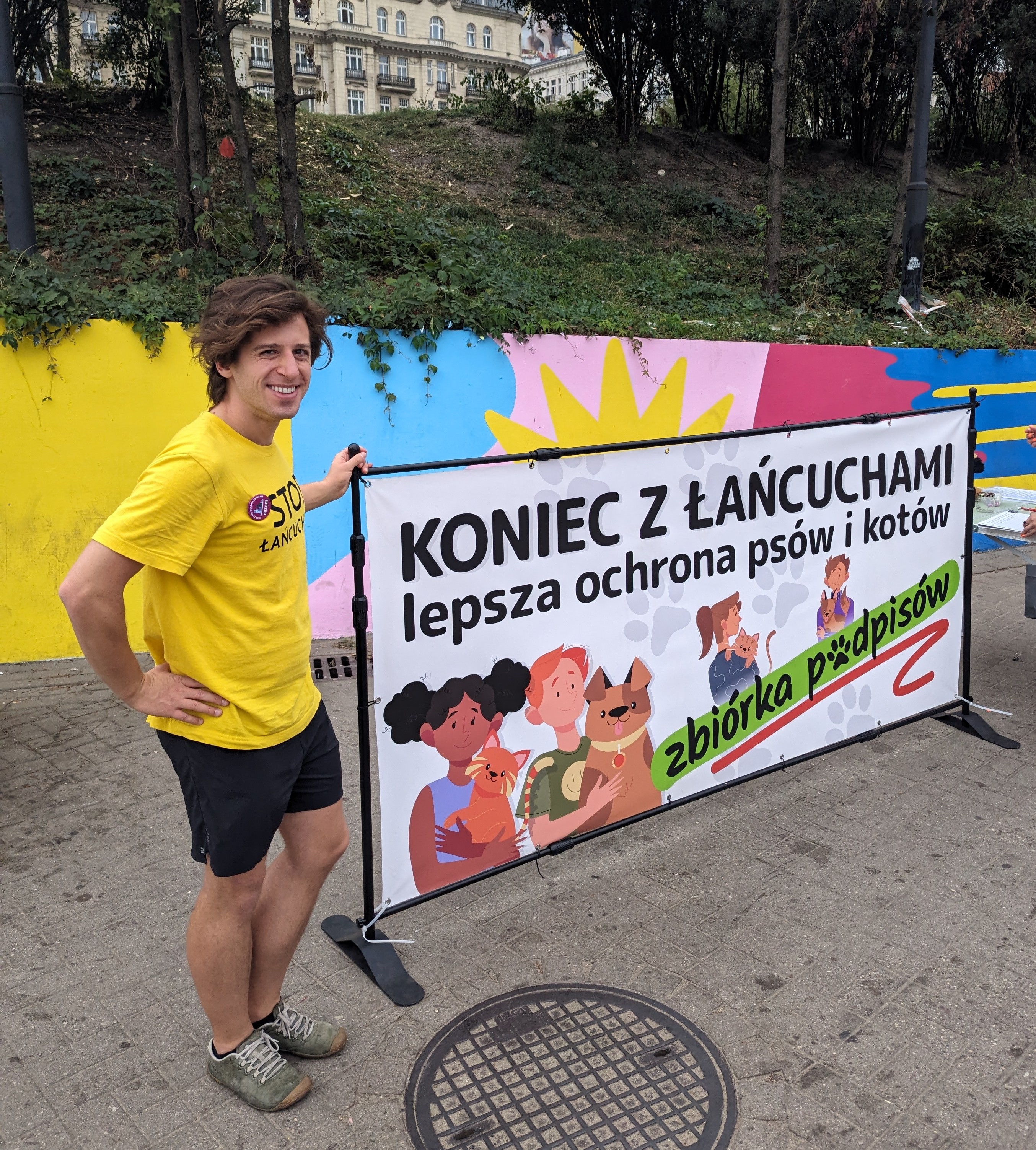 Razem z innymi osobami wolontariackimi stworzyliśmy grupę "Poznań mówi: Stop łańcuchom" z ambitnym celem zebrania 20 tysięcy podpisów. Starałem się być obecny ze zbiórką w różnych miejscach w Poznaniu, a także podczas krótkiej wizyty w Warszawie.